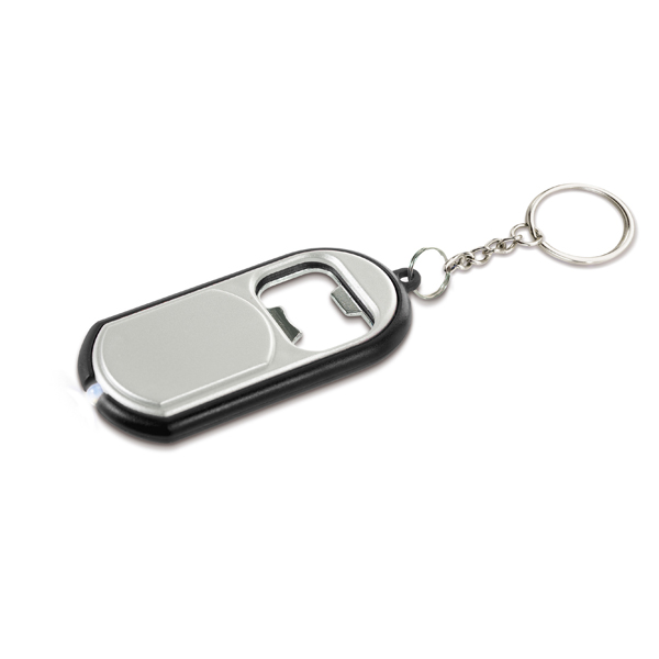 Chaveiro. Com LED e abridor de garrafas. Incluso 2 pilhas LR41. 34 x 68 x 11 mm