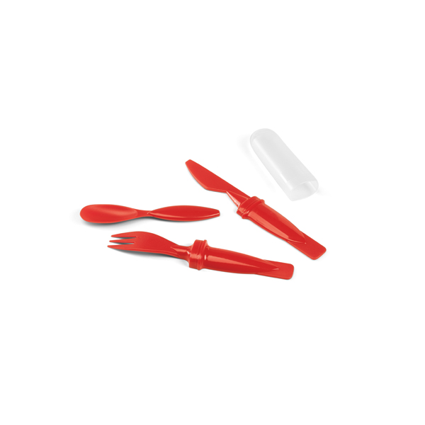 Conjunto de talheres. PP. 3 talheres: garfo, faca e colher. Food grade. 31 x 178 x 20 mm