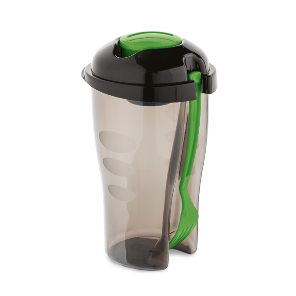 Copo para salada. PP. Com garfo e molheira. Capacidade: 850 ml. Food grade. Caixa branca 94659 vendida opcionalmente. 110 x 190 mm