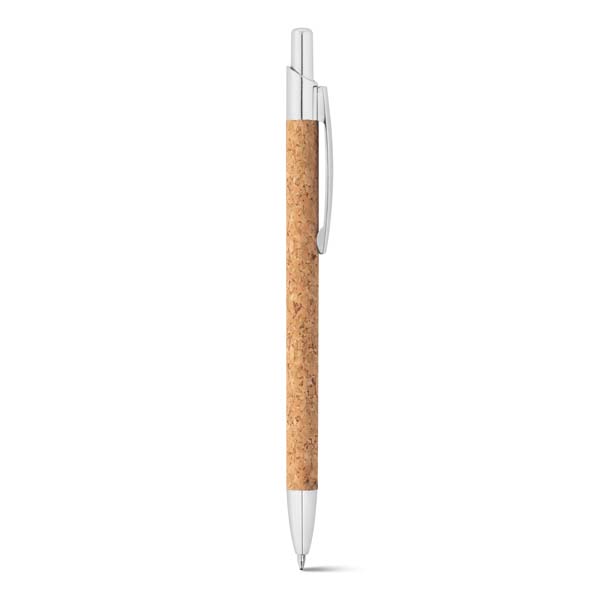 Esferográfica. Cortiça e alumínio. 1,5km de escrita. Fornecida com embalagem presente em cartão. 9 x 139 mm | Embalagem: 155 x 40 mm