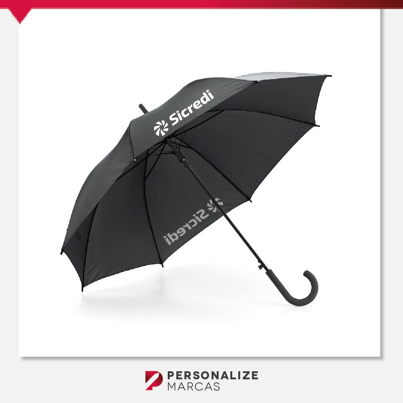 Guarda-chuva em poliester 190T com pega revestida a borracha e abertura automatica na cor preta.