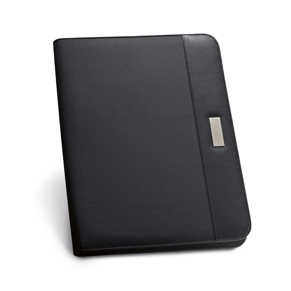 Pasta A4. C. sintético e microfibra. Bloco: 20 folhas pautadas. Esferográfica não inclusa. 245 x 325 x 40 mm | Chapa: 16 x 45 mm