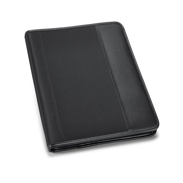Pasta A4. C. sintético e microfibra. Com 4 argolas de 20 mm para folhas A4. Bloco: 20 folhas pautadas. Pen drive não inclusa. 265 x 340 x 45 mm