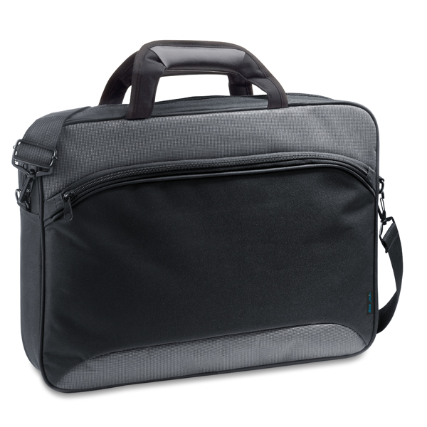 Pasta para notebook. 600D2Tone e 300D. Compartimento forrado, com divisória almofadada para notebook até 15.6'. Bolso frontal com diversos bolsos interiores. Banda para transporte em trolley. Alça de ombro ajustável, com reforço almofadado. 400 x 295 x 75 mm