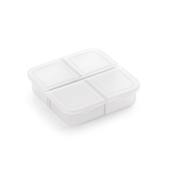 Porta comprimidos. Com 4 divisórias. Food grade. 60 x 60 x 18 mm