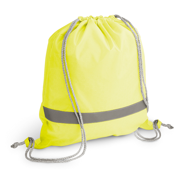 Sacola tipo mochila. 210D. Com elementos refletivos. 350 x 400 mm