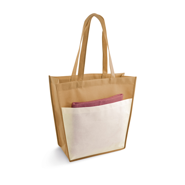 Sacola. Non-woven: 80 g/m². Bolso frontal. Alças de 60 cm. 400 x 350 x 150 mm